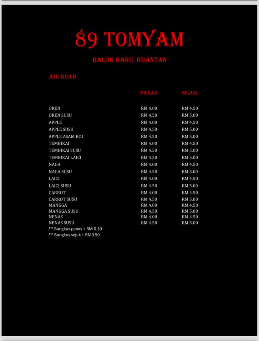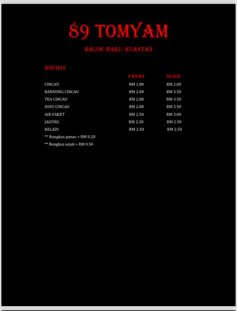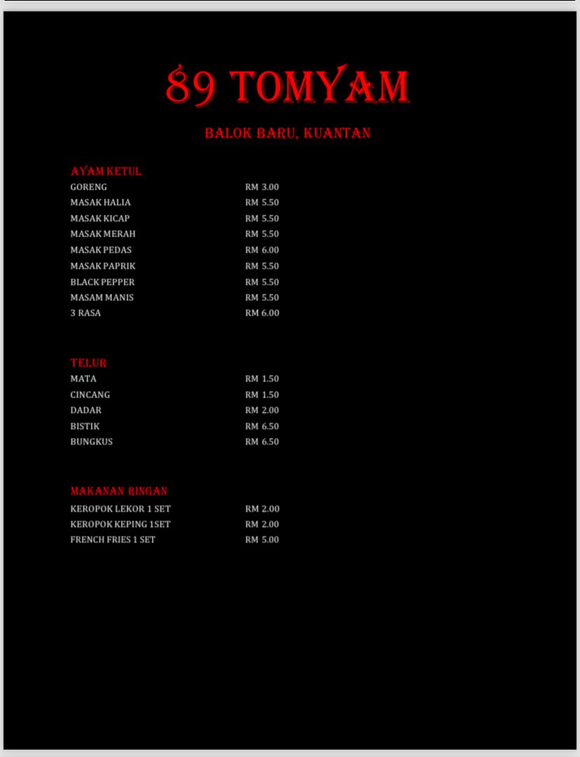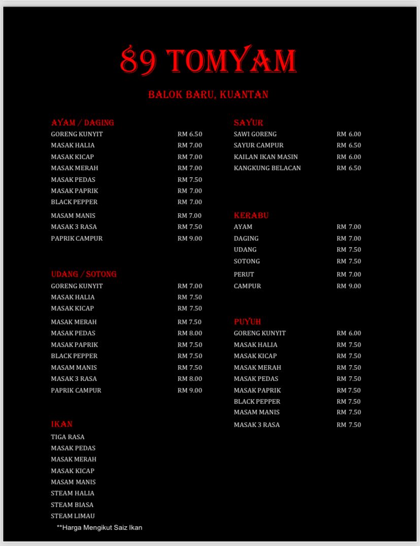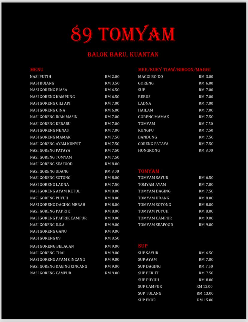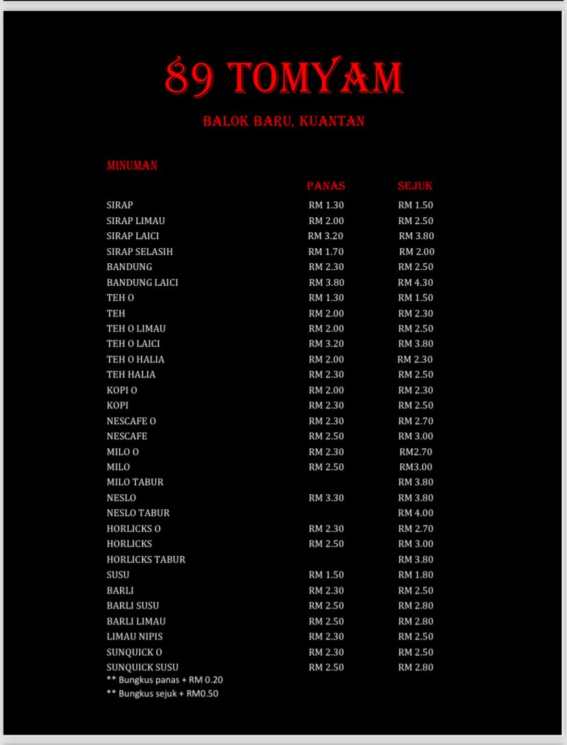 Welcome to 89 Tomyam, a culinary gem nestled in Kampung Balok, Kuantan. Known for its vibrant atmosphere and affordable pricing, this restaurant captures the heart of local cuisine. You can experience a delightful range of dishes that showcase the rich flavors of traditional tomyam, along with a variety of other mouthwatering options, making it a haven for food lovers.